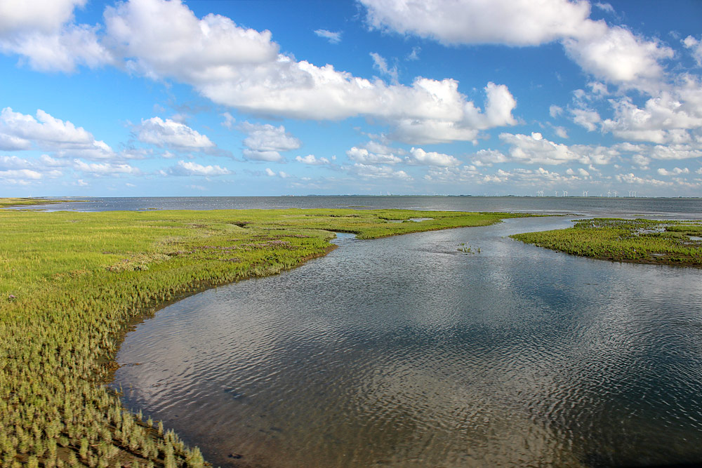 Bei der Fahrt zum Westanleger passiert man auch einige Priele. Im Bereich der Prielbrücken sind große Löcher entstanden – die sogenannten Aalkuhlen.