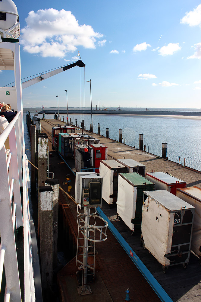 ‹ 2017, als dieses Foto entstand, waren noch die alten, bunten Gepäckcontainer im Einsatz. Diese waren deutlich kleiner, man hatte dadurch viel mehr einzelne Container zu verladen.