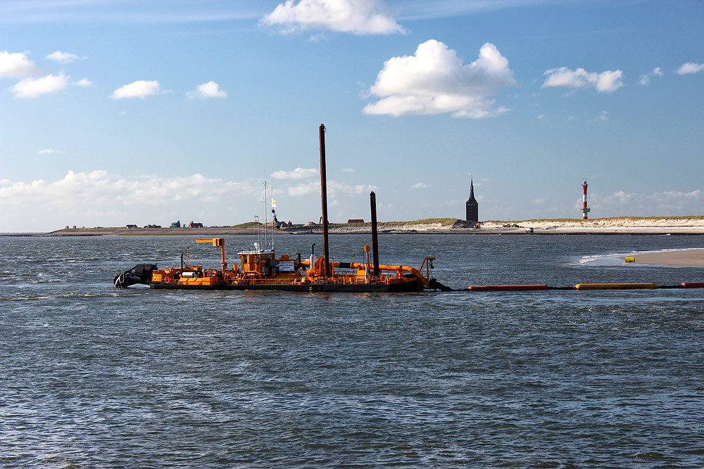 Hier ein weiteres Foto des Cutterbaggers »Pirat IX«, mit dessen Hilfe der Strand vor den Harle Hörn-Dünen aufgespült wird.