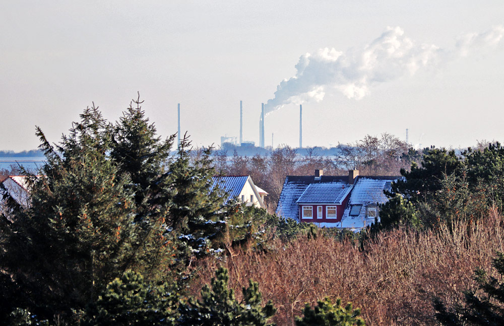 Keine Sorge, ganz so nah, wie es hier scheint, sind die Industrieanlagen sowie das Kraftwerk des Voslapper bzw. Rüstersieler Grodens nicht.