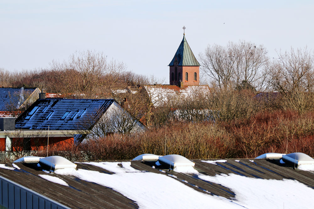 Aus der Ferne betrachten wir den Turm der Nikolaikirche. In den umliegenden Bäumen haben sich einige Dohlen und Krähen zusammengefunden, sie sorgen für die typisch-winterliche Geräuschkulisse.