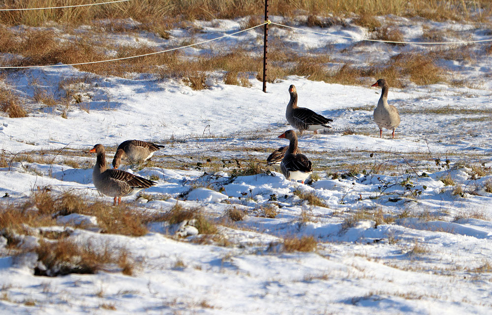 Graugänse sind im Sommer wie im Winter auf der Insel zu finden. Hier ein paar Exemplare im Westinnengroden.