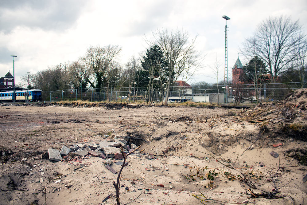 An dieser Stelle standen vor kurzem noch baufällige Baracken. Nun sind sie verschwunden und der Blick auf die Bahnanlagen dahinter sowie die Nikolaikirche ist frei.