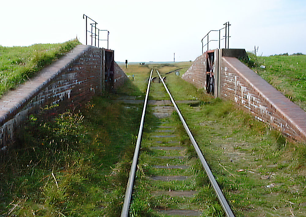 Hier sehen wir das Deichschart, wie es sich Ende der 1990er Jahre noch präsentierte: Komplett geklinkert und auf der Oberseite mit abgerundeten Klinkersteinen versehen.