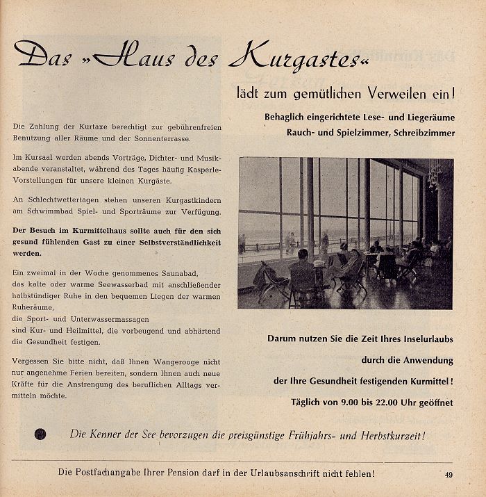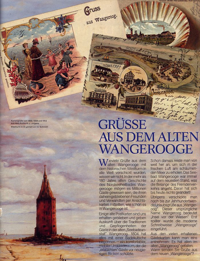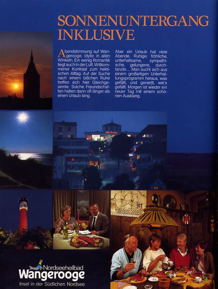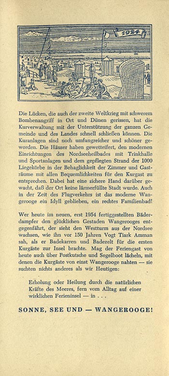 Einen schönen Eindruck vom Wandel der Zeit erhält man, wenn man sich die alten Prospekte und Gastgeberverzeichnisse von Wangerooge ansieht. Auf dieser Seite sind, chronologisch sortiert, einige davon ausgestellt.