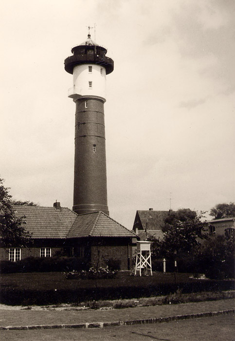 ‹ Eine Wetterstation, gut zu erkennen am weißen Häuschen, befand sich einst in unmittelbarer Nähe des Leuchtturms, der zu dem Zeitpunkt noch aktiv war. Im Vordergrund die »Bahnhofstraße«.