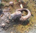 Diese verrostete Öse befindet sich heutzutage dort, wo damals das Turmfundament zu finden war, nämlich auf der Buhne B.