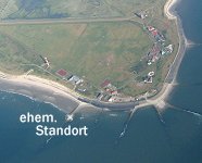 Das vierte Foto zeigt das zur alten Fundamentsicherung gehörige Natursteinpflaster und auf dem fünften Foto sehen wir noch einmal die Buhne ›B‹ von Norden aus. Das letzte der Fotos ist eine Luftaufnahme vom Inselwesten mit eingezeichnetem Westturm-Standort (dieses können Sie durch Klick auf das Bild vergrößert betrachten).