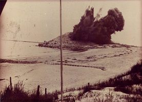 Letzterer sollte am 23. Dezember des Jahres 1914 mit Hilfe einer gezielten Sprengung niedergelegt werden. Doch erwies sich der über 300 Jahre alte Turm als überaus standfest, nach der ersten Sprengung stand noch immer ein beachtlicher Teil der Außenmauern (siehe Foto unten).