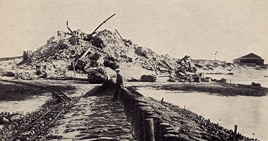 Die Buhne, auf der sich das Fundament befindet, ist übrigens die Buhne ›B‹ (jede der Inselbuhnen ist mit einem Buchstaben versehen), sie wurde zur Stärkung des Turmfundaments in den Jahren 1882 und '87 gebaut. Weiter oben auf dieser Seite sehen Sie bei den Skizzen auch eine Zeichnung, die die Fundamentsicherung inkl. Buhne ›B‹ zeigt.