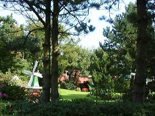 Im Garten hier stehen zahlreiche Windmühlen, darunter eine relativ große.