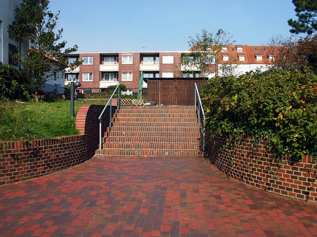 Diese Treppe führt hinauf zum Platz vor der katholischen Kirche.