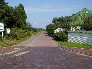 Rechts befindet sich jetzt der Flugplatz, links geht's in Richtung Dorf.