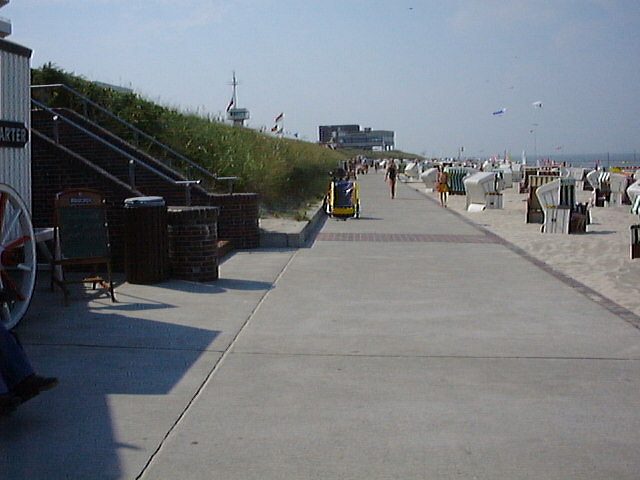Links befindet sich das Rettungsschwimmergebäude (ja, IN einer Treppe).