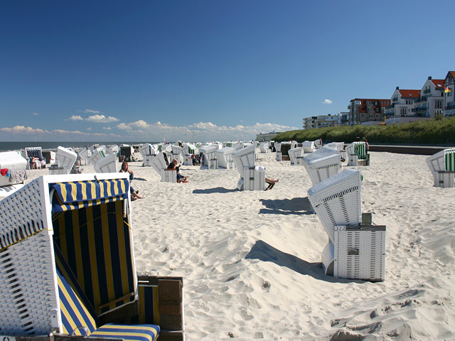 Die typischen weißen Strandkörbe des Wangerooger Hauptstrandes…