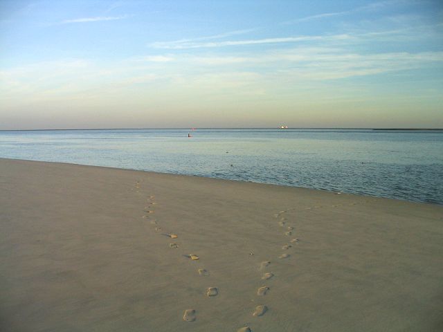 Die Spuren im Sand führen uns an die Wasserkante, die das östliche Ende der